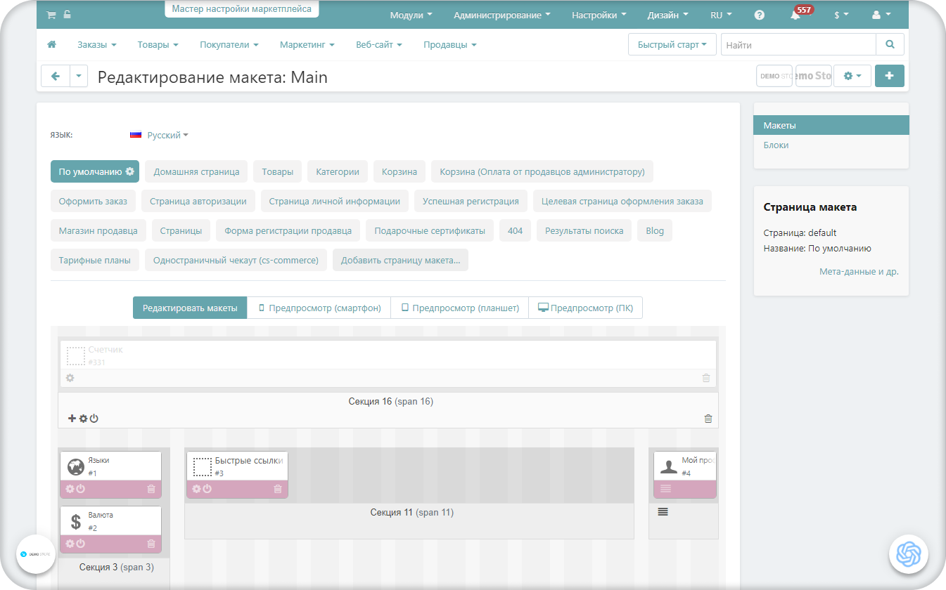 - cs-cart и cs-cart ultimate - для каждой витрины отдельно, а также для режима отображения всех витрин;
